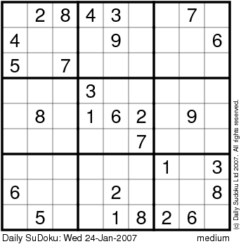 The Daily SuDoku: Wed 24-Jan-2007