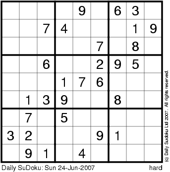 The Daily SuDoku: Sun 24-Jun-2007