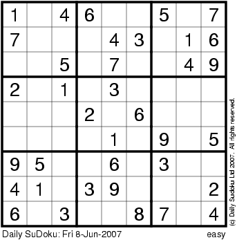The Daily SuDoku: Fri 8-Jun-2007