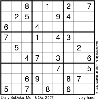 The Daily SuDoku: Mon 8-Oct-2007