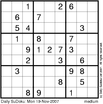 The Daily SuDoku: Mon 19-Nov-2007