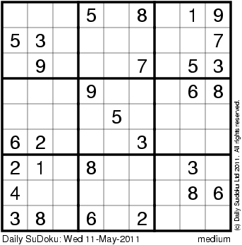 The Daily SuDoku: Wed 11-May-2011