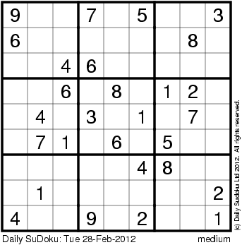 The Daily SuDoku: Tue 28-Feb-2012