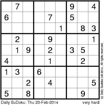 The Daily SuDoku: Thu 20-Feb-2014
