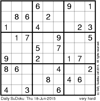 The Daily SuDoku: Thu 18-Jun-2015