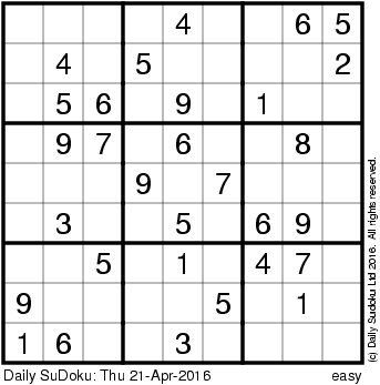 The Daily SuDoku: Thu 21-Apr-2016