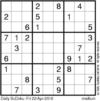The Daily SuDoku: Fri 22-Apr-2016