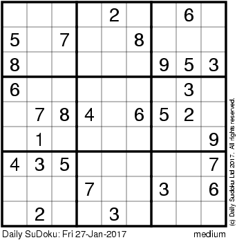 The Daily SuDoku: Fri 27-Jan-2017