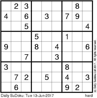 The Daily SuDoku: Tue 13-Jun-2017