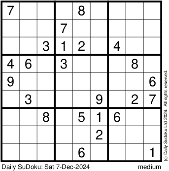 The Daily SuDoku: Sat 7-Dec-2024