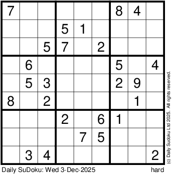 The Daily SuDoku: Wed 3-Dec-2025