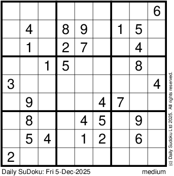 The Daily SuDoku: Fri 5-Dec-2025
