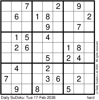 The Daily SuDoku: Tue 17-Feb-2026
