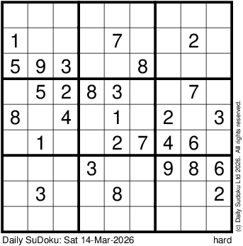 The Daily SuDoku: Sat 14-Mar-2026