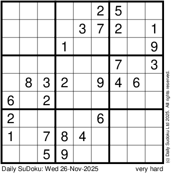 The Daily SuDoku: Wed 26-Nov-2025