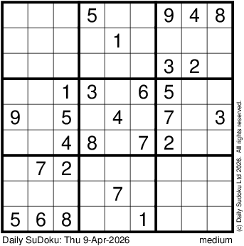 The Daily SuDoku: Thu 9-Apr-2026