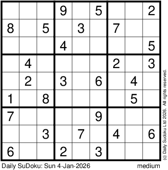 The Daily SuDoku: Sun 4-Jan-2026